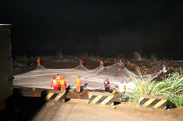 在貴州桐梓,松坎河(he)水(shui)位暴(bao)漲,上游一處工(gong)地拌(ban)合站3個60噸水(shui)泥粉罐(guan)被(bei)山洪沖走(zou),直接威(wei)脅下游重慶(qing)市綦江區趕水(shui)鎮(zhen)跨河(he)鐵(tie)路橋(qiao)梁及(ji)沿河(he)群眾(zhong)財產設施安全。中(zhong)鐵(tie)二十(shi)三局集團渝黔擴能項目部積極配(pei)合參(can)與河(he)道攔(lan)截罐(guan)體,支立攔(lan)截網,架設施工(gong)用電(dian)線路為夜(ye)間搶險(xian)照明,成功將(jiang)罐(guan)體打撈(lao)上岸,及(ji)時解除了安全隱患。