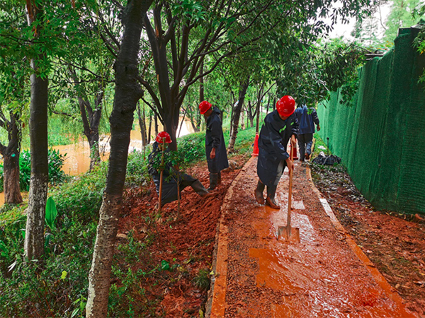在(zai)云南昆(kun)明,中鐵十八局集團(tuan)昆(kun)明市政項(xiang)目“全副武裝(zhuang)”,加入到指揮疏導(dao)交通的行列中。他們奔赴(fu)各積水(shui)點位(wei),冒雨打(da)開井(jing)蓋(gai),清理雜(za)物,疏通排(pai)水(shui)通道(dao);在(zai)工地(di)旁(pang)的人行道(dao)上,手握掃帚、鐵鍬,鏟除淤泥,保證了積水(shui)路(lu)段的交通通暢和行車安全,受到了當(dang)地(di)交警(jing)和群(qun)眾的點贊。