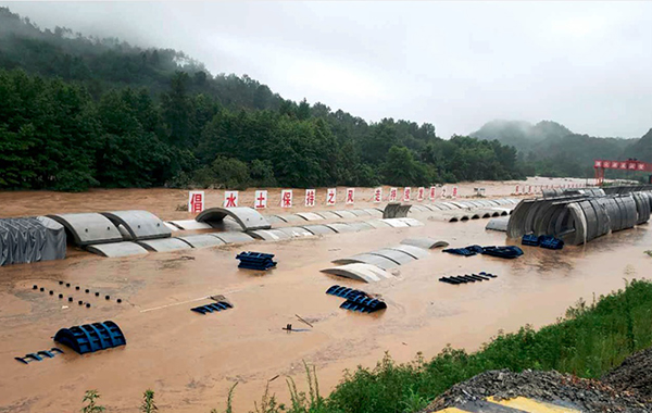 在云南(nan)鎮雄,中鐵十七(qi)局集團昭瀘項目(mu)拌(ban)合站、窩凼溝大(da)橋、坪上(shang)隧道(dao)斜井等工點相繼(ji)因(yin)暴雨受損。該項目(mu)立即(ji)啟動(dong)防汛救災緊急預案(an),通過在各水害路段堆(dui)碼沙(sha)袋,堵水引流(liu);及(ji)時清理(li)泄(xie)水河道(dao)、路面(mian)雜物(wu),防止(zhi)堵塞;同時拓寬河道(dao)泄(xie)洪面(mian),加固河堤(di),將施工現場受災情況降(jiang)到了(le)最低。