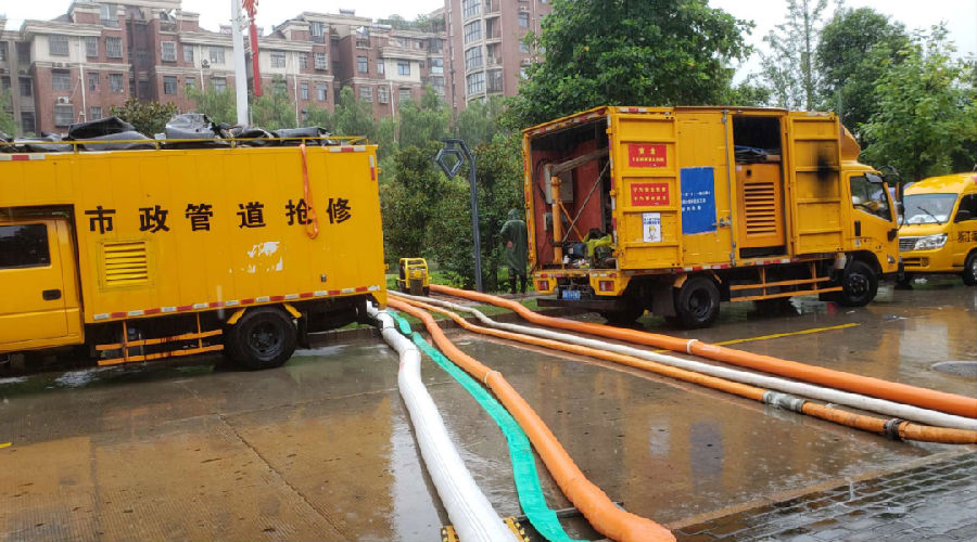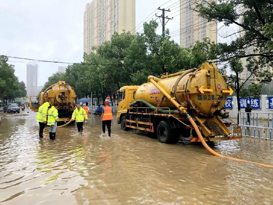 長江環保集團組織各方力量,調集抽排設備,為江西九江城區部分路段以及項目周邊社區排水排澇。