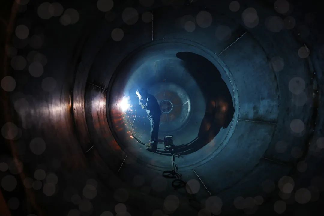 環(huan)境(jing)溫(wen)度、罐(guan)體(ti)內(nei)溫(wen)度、焊服內(nei)溫(wen)度,層層升溫(wen),北重集(ji)團專(zhuan)汽公司職工在(zai)攪(jiao)拌車罐(guan)體(ti)內(nei)承(cheng)受著“桑拿”的熱(re)(re)度。溫(wen)度高,他們的干勁熱(re)(re)情更(geng)高,汗水(shui)在(zai)焊服內(nei)流淌,換來的是(shi)生(sheng)產安全(quan)的保障。