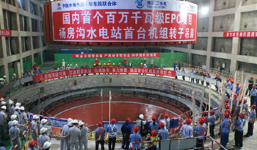 10月18日,中國水(shui)電七(qi)局(ju)華東院楊(yang)房溝總(zong)承包部承建(jian)的(de)國內首個百萬千瓦級EPC水(shui)電項目楊(yang)房溝水(shui)電站首臺(1號(hao))機組轉(zhuan)子成功吊裝就位。