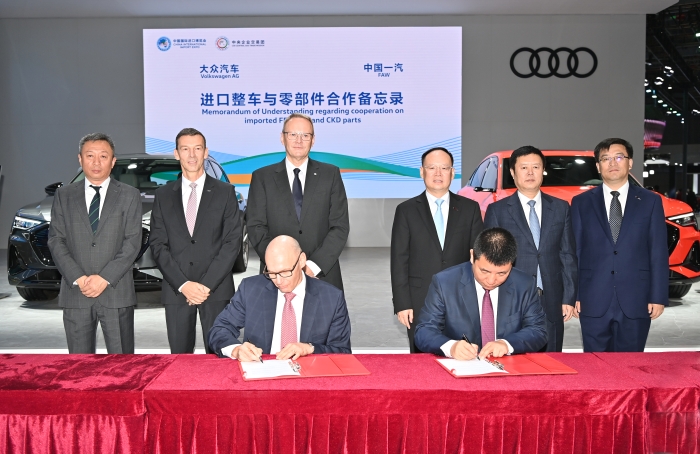 11月(yue)5日,在(zai)第三(san)屆中國國際進(jin)口博覽會汽車(che)展(zhan)區大眾(zhong)汽車(che)集(ji)(ji)團展(zhan)臺,中國一(yi)汽與大眾(zhong)汽車(che)集(ji)(ji)團簽(qian)署進(jin)口整車(che)與零部件(jian)合(he)作備忘錄(lu)。