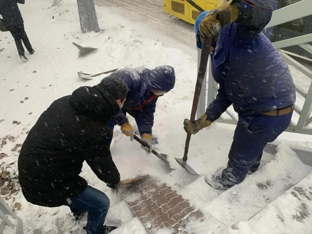 哈電集團電機公司積雪清掃志愿服務隊以雪為令,第一時間集結隊伍對過街天橋實施積雪清掃,為上班職工和市民出行提供了便利。