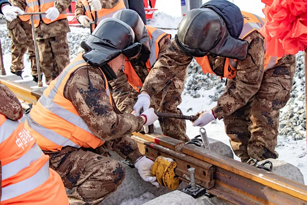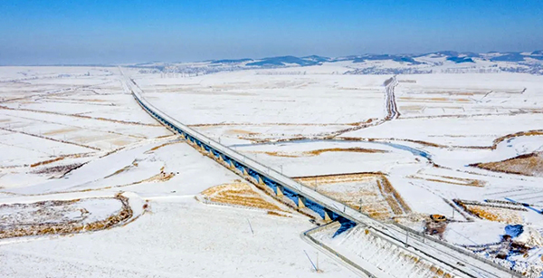 中鐵十四(si)局承擔了(le)牡(mu)佳高(gao)鐵佳木(mu)斯(si)至七臺(tai)河段(duan)377.5公里的鋪軌任(ren)務。該工(gong)程地處高(gao)寒地區(qu),冬季平均(jun)氣(qi)溫(wen)達到(dao)零下19攝氏度,極端最低氣(qi)溫(wen)達零下35攝氏度。面對低溫(wen)嚴寒天氣(qi),建設者需要解決(jue)防(fang)凍漲、防(fang)雪(xue)害(hai)、冬季施工(gong)等多種技術難題。