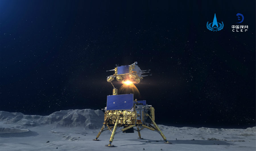 12月3日(ri)23時(shi)10分,嫦娥(e)五號上升器月面(mian)點火,3000牛發動機工(gong)作約6分鐘后(hou),順利將攜帶(dai)月壤(rang)的上升器送入(ru)到預定環月軌道。這是我(wo)國首次實現地外(wai)天體起飛。