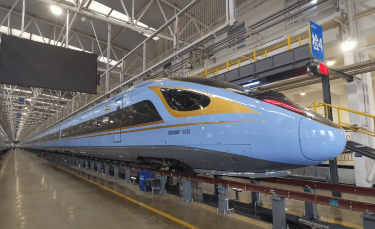 時速250公(gong)里(li)CR300BF型“復(fu)興(xing)號”動(dong)車(che)組是(shi)具(ju)有(you)完(wan)全自主知識(shi)產(chan)權的中國標準動(dong)車(che)組系列(lie)化(hua)產(chan)品之一,采(cai)用4動(dong)4拖8輛編組,輪周牽(qian)引功率(lv)5460kw,最高運營時速250公(gong)里(li),由中車(che)長春(chun)軌道客車(che)股(gu)份有(you)限公(gong)司和中車(che)唐山(shan)機車(che)車(che)輛有(you)限公(gong)司生產(chan)制造(zao)。