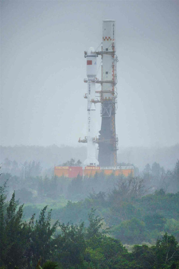 雨霧蒙蒙中,火箭向發射區前進