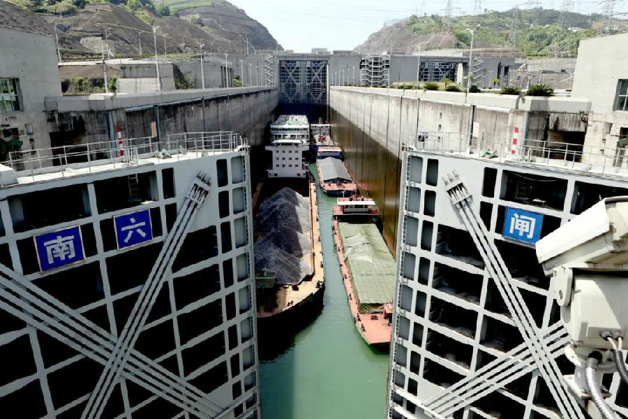 截至2020年12月31日(ri),三峽樞紐(niu)過(guo)壩(ba)貨運量(liang)達1.38億噸,通航效益顯著。其中,三峽船閘(zha)過(guo)壩(ba)貨運量(liang)達1.37億噸,主(zhu)要(yao)運行(xing)設備完好率達100%,兩(liang)線船閘(zha)平均(jun)通航率為(wei)94.62%;三峽升船機(ji)按時恢復通航,充(chong)分發揮了快速過(guo)壩(ba)通道的作用。