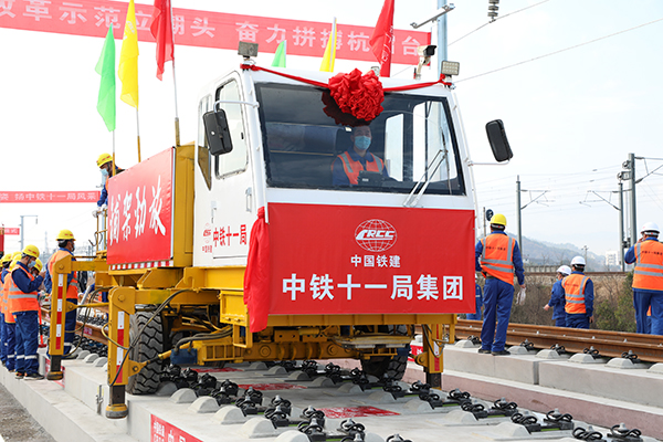 2月1日10時(shi),在杭紹臺鐵(tie)路建設(she)施(shi)工(gong)現場,隨著(zhu)(zhu)中國(guo)(guo)鐵(tie)建所屬中鐵(tie)十一局施(shi)工(gong)人(ren)員將首對500米長(chang)鋼(gang)軌(gui)安全(quan)平穩地(di)鋪(pu)設(she)到位,標志著(zhu)(zhu)我(wo)國(guo)(guo)首條民營資本控股(gu)的高鐵(tie)——杭紹臺鐵(tie)路工(gong)程全(quan)面進入(ru)鋪(pu)軌(gui)階段。