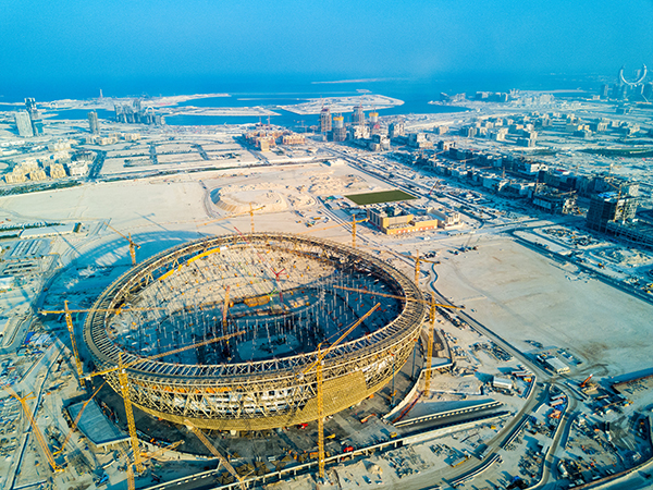 該項(xiang)(xiang)目是(shi)目前(qian)中(zhong)(zhong)國企業在海外(wai)建(jian)(jian)造的(de)(de)(de)規(gui)模最大(da)(da)、容納人(ren)數最多的(de)(de)(de)專(zhuan)業場(chang)館(guan),也是(shi)世界上(shang)同類型(xing)索網體(ti)系中(zhong)(zhong)跨度最大(da)(da)、懸挑距離最大(da)(da)的(de)(de)(de)索網屋面(mian)單體(ti)建(jian)(jian)筑,將舉(ju)辦2022年卡(ka)塔(ta)爾(er)世界杯閉幕式、半決(jue)賽(sai)和決(jue)賽(sai)等重大(da)(da)賽(sai)事。該項(xiang)(xiang)目幕墻(qiang)三角形(xing)網格立(li)面(mian)效(xiao)果展現了卡(ka)塔(ta)爾(er)傳統燈籠紋飾(shi),建(jian)(jian)筑整(zheng)體(ti)呈現出阿(a)拉(la)伯金(jin)色(se)碗(wan)狀器皿造型(xing)。屋面(mian)主(zhu)索網采用雙層輪輻式張力結構,跨度達274米(mi)(mi),懸挑距離為76米(mi)(mi),形(xing)如一個巨大(da)(da)的(de)(de)(de)車(che)輪狀“碗(wan)蓋”。2020年12月,該項(xiang)(xiang)目登上(shang)卡(ka)塔(ta)爾(er)當(dang)地新發行(xing)的(de)(de)(de)10元面(mian)值紙(zhi)幣。“中(zhong)(zhong)國建(jian)(jian)造”首次登上(shang)卡(ka)塔(ta)爾(er)貨幣,成為“國家名片(pian)”。