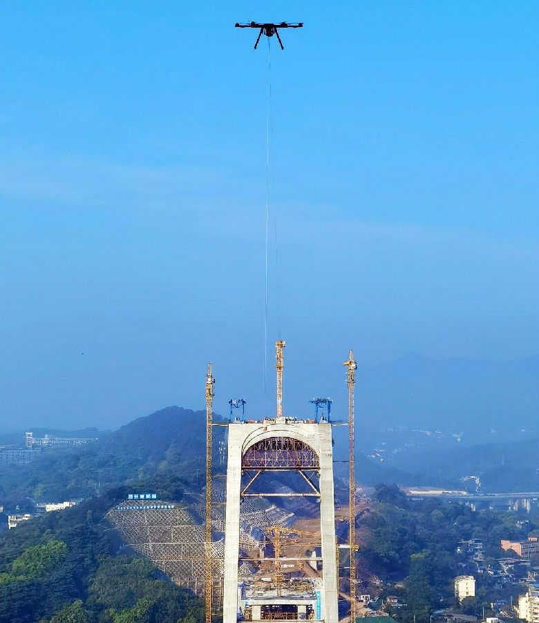 重(zhong)慶(qing)郭家沱長(chang)江(jiang)大橋主(zhu)跨720米,橫跨長(chang)江(jiang)黃金水道。為確(que)保先導索(suo)過江(jiang)施(shi)工安(an)全、經濟以(yi)及(ji)降低(di)對航運影響,項目(mu)團隊結合施(shi)工建(jian)設實際情(qing)況,經多次運用BIM推演模(mo)擬,對多個(ge)方(fang)案比(bi)選和(he)專家論證(zheng),最終(zhong)采用無人(ren)機牽引先導索(suo)過江(jiang)方(fang)法(fa)。