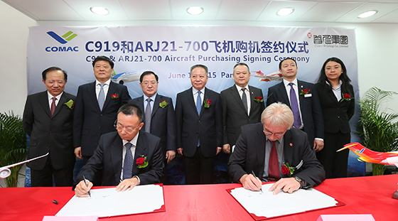 2015年6月15日(ri),在第51屆巴黎國際航空航天(tian)博覽會(hui)開幕當日(ri),由中國普仁(ren)(ren)集團投資的德(de)國普仁(ren)(ren)航空有(you)限公司與中國商(shang)飛(fei)公司簽署(shu)7架(jia)ARJ21-700飛(fei)機(ji)(ji)及7架(jia)C919大(da)型客機(ji)(ji)購機(ji)(ji)意向協(xie)議。