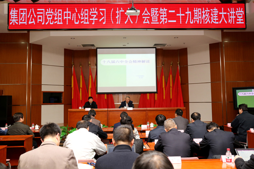 11月2日(ri),中(zhong)(zhong)(zhong)國(guo)核工(gong)業建(jian)設集團公司(si)召開黨(dang)(dang)組理(li)論學習(xi)中(zhong)(zhong)(zhong)心(xin)組學習(xi)擴大(da)會(hui),專題學習(xi)黨(dang)(dang)的(de)十八屆(jie)六中(zhong)(zhong)(zhong)全會(hui)精神。中(zhong)(zhong)(zhong)國(guo)核建(jian)黨(dang)(dang)組書記、董事長(chang)王壽(shou)君(jun)主持會(hui)議并(bing)講話。中(zhong)(zhong)(zhong)國(guo)核建(jian)黨(dang)(dang)組成(cheng)員(yuan)、總助級(ji)領導(dao),股份公司(si)高管、總部各部門(men)(men)處級(ji)以上人員(yuan)以及(ji)各成(cheng)員(yuan)單位領導(dao)班子成(cheng)員(yuan)、部門(men)(men)負責人等(deng)分別在主、分會(hui)場參加學習(xi)會(hui)。