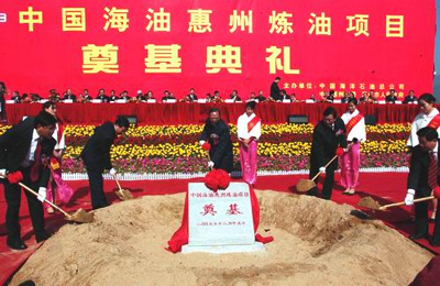 廣東省“十一五”期間重點建設項目、年加工規模為1200萬噸的中國海洋石油惠州煉油項目,于12月15日上午在惠州大亞灣經濟技術開發區石化工業區隆重奠基。