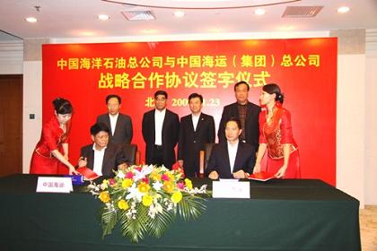 2009年11月23日下午,中國海運(集團)總公司與中國海洋石油總公司在北京簽署戰略合作協議。根據協議,雙方將深入推進油品運輸、石化產品物流以及資本等合作,充分整合和發揮各自優勢,共同促進雙方在各自領域的發展,增強各自的核心競爭力。