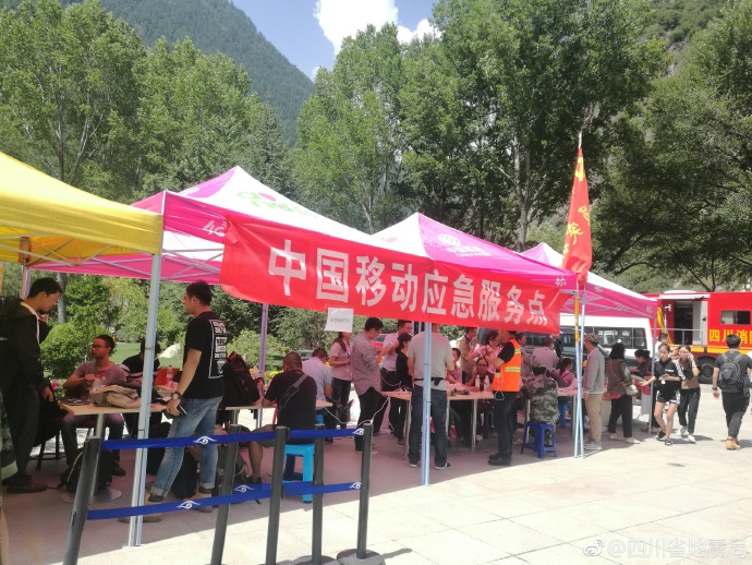 中國移動在九寨溝溝口票務中心設立應急服務點