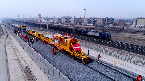 2018年(nian)1月(yue)7日上午,隨著(zhu)中(zhong)國鐵(tie)建所(suo)屬中(zhong)鐵(tie)十四局CPG500型鋪(pu)軌(gui)機在(zai)彰武站將首(shou)(shou)對500米長鋼(gang)軌(gui)安全(quan)平穩地鋪(pu)設(she)到軌(gui)枕上,標(biao)志著(zhu)內蒙(meng)(meng)古自治(zhi)區(qu)連接東北(bei)地區(qu)的首(shou)(shou)條高鐵(tie)——內蒙(meng)(meng)古通(tong)(tong)遼至遼寧新(xin)民北(bei)高鐵(tie)正式進入鋪(pu)軌(gui)階段(duan),為全(quan)線順利開通(tong)(tong)創造了有利條件(jian)。