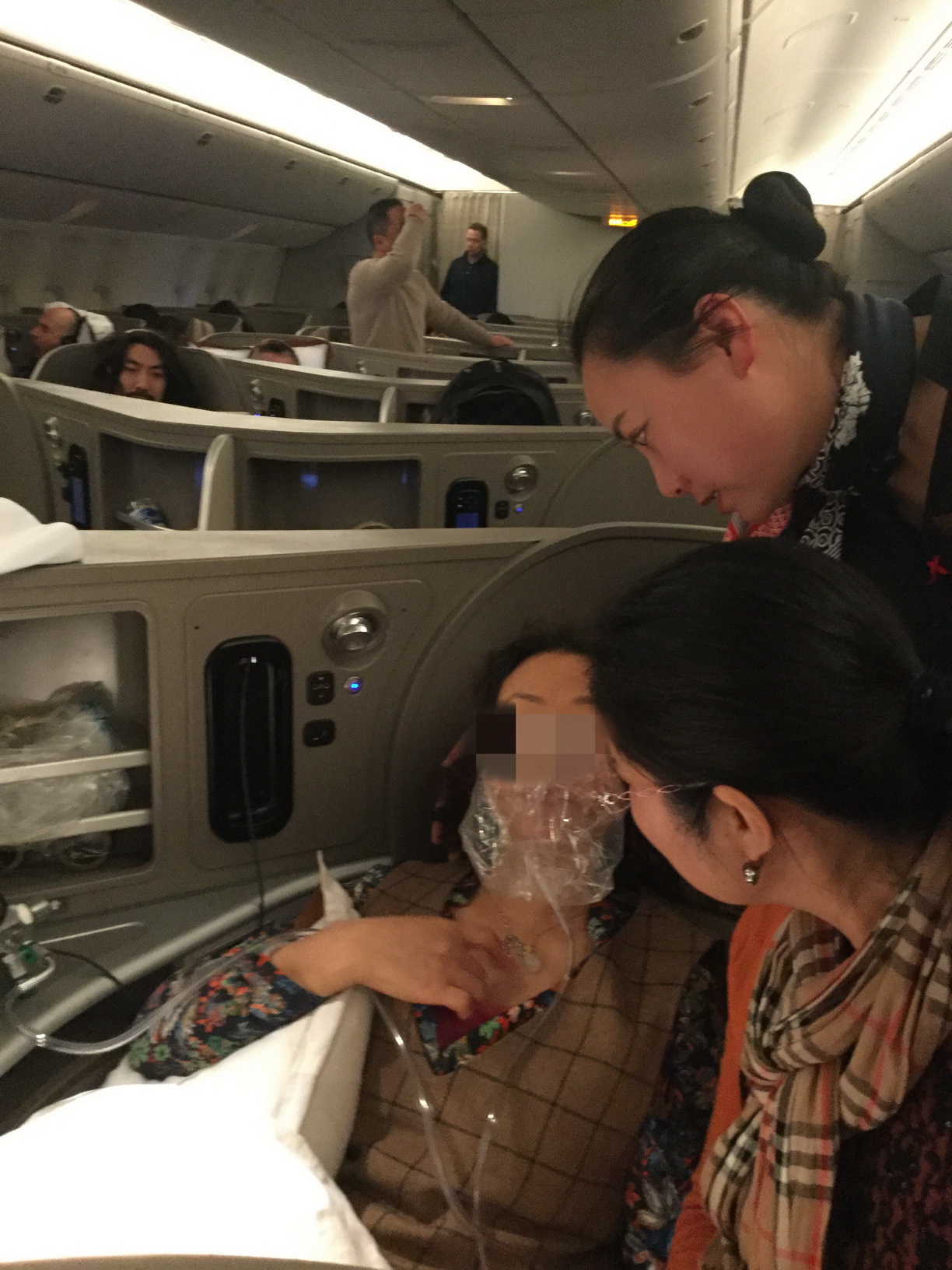 飛行途中,這名(ming)旅客突然(ran)感(gan)到身(shen)體不適,出現呼吸困難(nan),一(yi)度抽搐昏迷,情況十分危急(ji)。東航機組第(di)一(yi)時間實施了(le)緊急(ji)救治,并將(jiang)她從(cong)經(jing)濟艙(cang)轉移到公(gong)務艙(cang)平躺休息,還通過機上廣播尋(xun)找(zhao)到一(yi)名(ming)醫生共同參與救治。