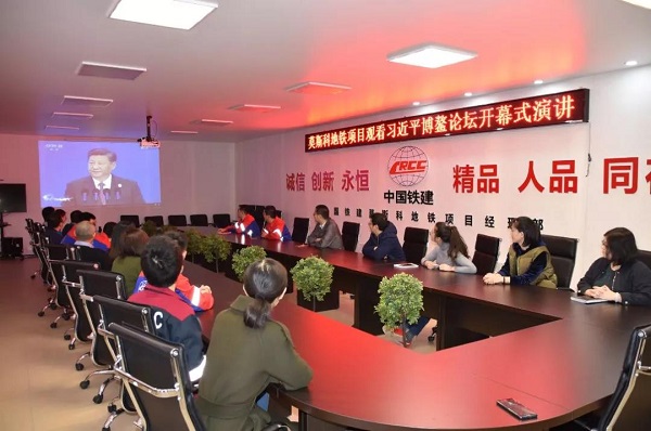 中國(guo)鐵建莫斯科地(di)(di)鐵項目員工(gong)在當地(di)(di)凌晨集體在線觀看(kan)直播。習主席(xi)強調(diao)“中國(guo)開(kai)放的(de)大(da)門不(bu)會關(guan)閉,只會越開(kai)越大(da)”,鼓舞著(zhu)代表中國(guo)地(di)(di)鐵走進歐洲的(de)中國(guo)建設者。