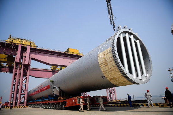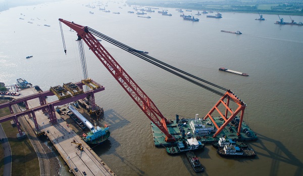 4月28日15時許,在江蘇鎮江一處碼頭前,三(san)架行車合力(li)將一臺(tai)巨型(xing)圓柱容器吊起,運裝至早(zao)已在江邊等待的運輸船上。這臺(tai)260萬噸/年沸騰床渣(zha)油(you)鍛(duan)焊(han)加氫反(fan)應器是目前世(shi)界上最重(zhong)的加氫反(fan)應器,它的成功(gong)制(zhi)造與發運也(ye)標志(zhi)著我國高端重(zhong)型(xing)裝備(bei)制(zhi)造旗艦——國機重(zhong)型(xing)裝備(bei)集團股份有限公司正式“揚帆起航”。