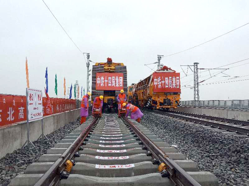 據悉,新通高(gao)鐵自京沈高(gao)鐵的(de)新民(min)北站引出,經遼(liao)寧彰武、內蒙古自治區(qu)甘旗卡,引入通遼(liao)站,線(xian)(xian)路(lu)全(quan)長197公(gong)里,設計(ji)時速(su)250公(gong)里。新通高(gao)鐵鋪軌施工從2018年1月7日開(kai)始,采用的(de)是500米長鋼軌直接(jie)鋪設無縫(feng)線(xian)(xian)路(lu)。項目部堅持質量第(di)一,采用2臺(tai)國內最先進、具有自主(zhu)知(zhi)識產權(quan)的(de)CPG500型(xing)鋪軌機進行鋪軌,投入大(da)型(xing)養路(lu)機械在軌道(dao)精(jing)調(diao)精(jing)整上(shang)進行平行作業,確保(bao)了(le)施工質量,取得了(le)單日鋪軌7公(gong)里的(de)優(you)異(yi)成績。