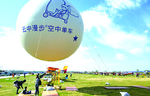 “云(yun)中漫(man)步”空中單車是(shi)一款面向(xiang)大眾娛樂的(de)無動力低空騎行(xing)(xing)氣(qi)球,氣(qi)球內充(chong)有氦(hai)氣(qi),系有保護繩,可使旅客在不高于50米的(de)升限范(fan)圍內(室內、室外(wai)不限)獨自(zi)進行(xing)(xing)空中騎行(xing)(xing)體驗(yan),可廣(guang)泛(fan)用于各大旅游景區、主題(ti)公(gong)園(yuan)和(he)(he)城市廣(guang)場的(de)旅游觀光項目和(he)(he)運動游樂項目,也可作為新(xin)穎的(de)廣(guang)告載體。