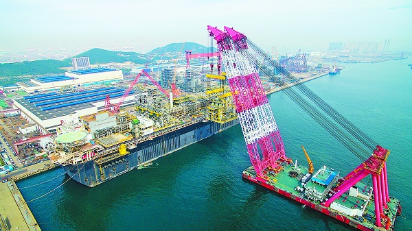 日前,四(si)建(jian)公司參建(jian)的(de)巴(ba)西(xi)國家石油(you)公司浮式生產儲(chu)油(you)卸油(you)裝(zhuang)置(FPSO)完工(gong)出(chu)海。FPSO是(shi)一(yi)(yi)套(tao)集煉化裝(zhuang)置和生活區于一(yi)(yi)體的(de)大型裝(zhuang)備,可對原油(you)進行初(chu)步加工(gong)并儲(chu)存,船身總長307米、寬74米、重(zhong)8萬噸,排水量是(shi)“遼寧(ning)號”航母的(de)5倍,是(shi)目前國內(nei)承(cheng)接(jie)的(de)工(gong)程量最(zui)(zui)大、最(zui)(zui)復雜(za)、技(ji)術要求最(zui)(zui)高的(de)海上(shang)超級工(gong)程,被稱(cheng)為“海上(shang)石油(you)加工(gong)廠”。