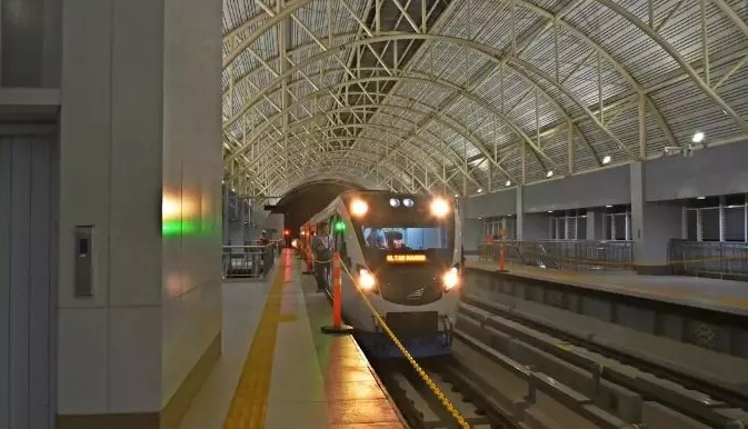 該項目(mu)線(xian)路總長45公里,起(qi)點(dian)和終點(dian)分別為巨(ju)港(gang)國(guo)際機場和巨(ju)港(gang)札卡巴林體育中心,沿線(xian)共(gong)設高架車站13個。項目(mu)鋪軌工期14個月,今年4月30日完工并進行試(shi)車運行,7月23日至7月30日對(dui)外免費(fei)開放。