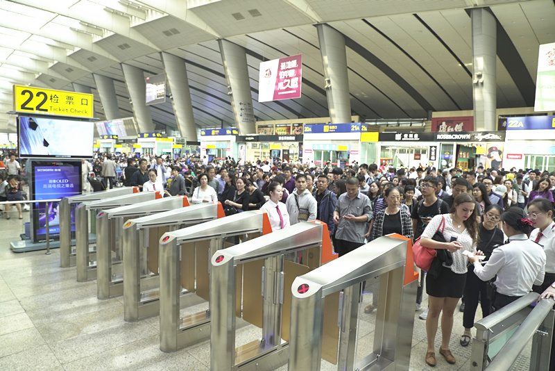 中秋、國慶雙節期間,由中國通號(hao)旗下通信(xin)信(xin)息集團自主研發的(de)實名制驗證閘(zha)機(ji)正式亮相北京南站和上海虹橋站,受到廣大旅客的(de)好評。