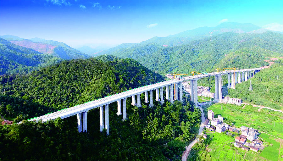 龍門大橋(qiao)(qiao)全長(chang)840.4米,有(you)17跨(kua),26根(gen)空心薄壁墩,平(ping)均墩高50米,最大高墩84米,采用“T梁+變截(jie)面(mian)鋼結構箱梁”設計。大橋(qiao)(qiao)兩次橫跨(kua)349省(sheng)道,便道坡(po)度(du)(du)達平(ping)均20度(du)(du),施工難度(du)(du)大。施工過程中,項目部精心組織、科學(xue)管理(li),創新采用自(zi)動翻模(mo)施工工藝,安全、高質推(tui)進(jin)施工進(jin)度(du)(du)。
