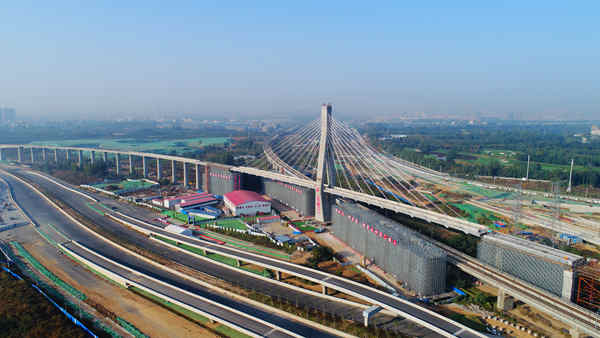 該斜拉橋(qiao)的(de)建造在(zai)國(guo)內尚屬首例,為異(yi)型(xing)橋(qiao)梁無(wu)支(zhi)撐(cheng)高(gao)空轉(zhuan)體(ti),控(kong)制難(nan)度較大,且施(shi)工臨近徐(xu)蘭(lan)高(gao)鐵營業(ye)線,安全風險極大。建設過(guo)程中,項(xiang)目部積極開展(zhan)技術攻關(guan),多次優化施(shi)工方案,采用多重安全防護,通過(guo)信息(xi)化手段強化轉(zhuan)體(ti)過(guo)程中的(de)實時(shi)監測(ce),將施(shi)工精度控(kong)制在(zai)毫(hao)米級,實現橋(qiao)梁安全、高(gao)質轉(zhuan)體(ti)。