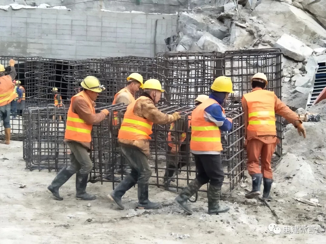 電建員工在工地現場搭建鋼筋籠