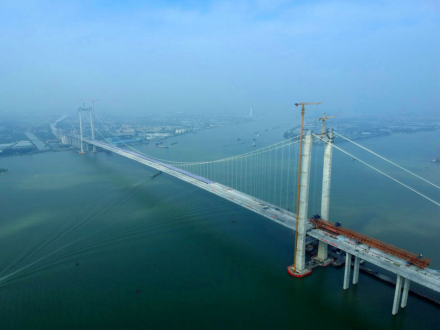 虎門二(er)橋(qiao)(qiao)(qiao)由(you)二(er)公(gong)(gong)局和二(er)航局參建(jian),公(gong)(gong)規院(yuan)設計(ji),全(quan)長(chang)(chang)12.89公(gong)(gong)里(li),雙(shuang)向八車道(dao),含大沙水道(dao)橋(qiao)(qiao)(qiao)、坭洲(zhou)水道(dao)橋(qiao)(qiao)(qiao)兩(liang)座超千米跨江懸索(suo)橋(qiao)(qiao)(qiao),建(jian)成(cheng)后(hou)將是世(shi)界上跨徑最長(chang)(chang)的(de)(de)(de)鋼箱梁(liang)懸索(suo)橋(qiao)(qiao)(qiao)。二(er)航局承建(jian)的(de)(de)(de)S3標(biao)段,主要施工內容(rong)包括大沙水道(dao)橋(qiao)(qiao)(qiao)東塔、東錨(mao)、中引橋(qiao)(qiao)(qiao)、海鷗島互通(tong)橋(qiao)(qiao)(qiao)及(ji)附(fu)屬工程,以及(ji)全(quan)線3533榀節段箱梁(liang)的(de)(de)(de)預制拼裝。施工期間,項目(mu)部實(shi)現全(quan)橋(qiao)(qiao)(qiao)節段箱梁(liang)的(de)(de)(de)裝配化預制拼裝,將對(dui)珠(zhu)江航道(dao)的(de)(de)(de)交(jiao)通(tong)影響降至最低。