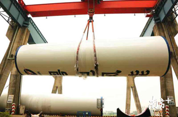 11月21日(ri)(ri),廣(guang)東(dong)省首(shou)(shou)個開工建設的大功(gong)率(lv)海(hai)(hai)上(shang)風電項(xiang)目——粵電湛江外羅海(hai)(hai)上(shang)風電項(xiang)目首(shou)(shou)套5.5MW塔(ta)(ta)(ta)筒在(zai)東(dong)方電氣(qi)集團東(dong)方重(zhong)(zhong)機(ji)專用(yong)碼頭順利(li)發貨。該項(xiang)目是(shi)今年8月18日(ri)(ri)東(dong)方重(zhong)(zhong)機(ji)與中(zhong)國水電四(si)局(蘭州(zhou))機(ji)械裝備有限公(gong)司合(he)作(zuo)成立廣(guang)州(zhou)新能源(yuan)裝備制造基地后的首(shou)(shou)個履約(yue)項(xiang)目,其首(shou)(shou)套塔(ta)(ta)(ta)筒的發運(yun)標志著東(dong)方重(zhong)(zhong)機(ji)已具備海(hai)(hai)上(shang)風電塔(ta)(ta)(ta)筒生產(chan)能力。