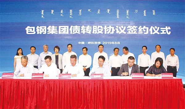 8月(yue)23日下午,《包鋼集團債轉股(gu)協議》簽約(yue)儀式在呼和浩特內(nei)蒙古飯店舉行。