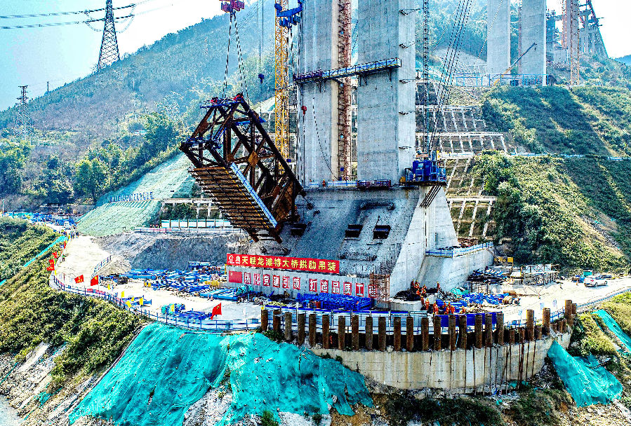 廣西交通投資集團投資建設的在建世界最大跨徑拱橋——天峨龍灘特大橋順利完成首節段拱肋吊裝