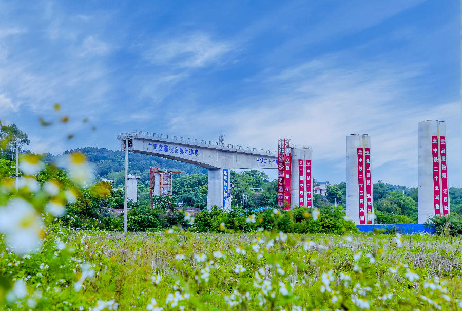 廣西交通投資集團投資建設的南寧至玉林鐵路項目首座跨越鐵路轉體橋——那舅特大橋跨越湘桂鐵路轉體橋順利完成轉體
