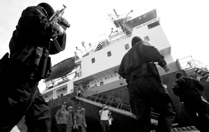 6月(yue)10日,海南省首次舉行船岸反(fan)恐保安(an)聯合演習。圖為省港務公安(an)局干警在演習中緊急登輪,處置事件。