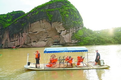 江西龍虎山景區的竹筏上安裝了使用5G信號直播的攝像頭(7月17日攝)。新華社記者 周密攝
