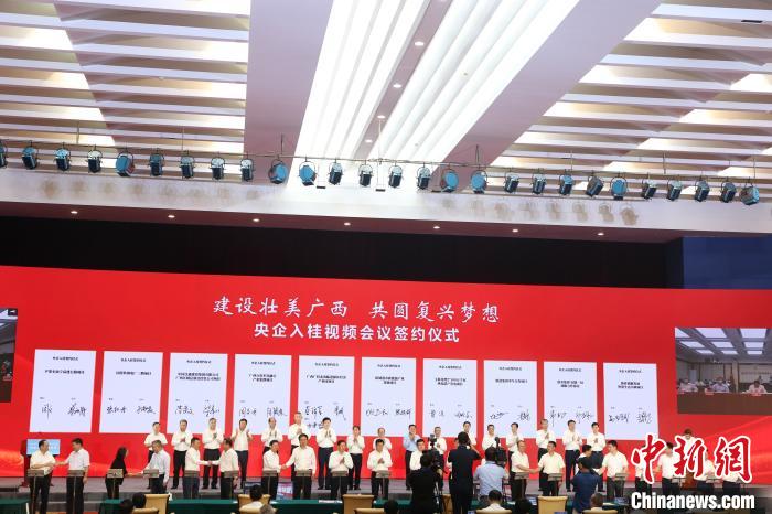 當天會議在北京和廣(guang)西(xi)南寧設立主會場(chang),并在72家央企(qi)總(zong)部(bu)及廣(guang)西(xi)14個市、71個縣(xian)設立分(fen)會場(chang)。本(ben)次簽(qian)(qian)約采(cai)取現(xian)場(chang)簽(qian)(qian)約和“云(yun)”簽(qian)(qian)約兩種方(fang)式進行。其中(zhong)(zhong),廣(guang)西(xi)壯族自治區人民政府與南方(fang)電網(wang)、南方(fang)航空、中(zhong)(zhong)廣(guang)核、中(zhong)(zhong)國融(rong)通集團(tuan)南部(bu)區域管理公司(si)、中(zhong)(zhong)核集團(tuan)等30個中(zhong)(zhong)央企(qi)業(ye)總(zong)部(bu)簽(qian)(qian)署合(he)作(zuo)協(xie)議;廣(guang)西(xi)桂冠電力公司(si)等央企(qi)分(fen)別與廣(guang)西(xi)方(fang)面簽(qian)(qian)署投資合(he)作(zuo)項(xiang)目78個,涵蓋產業(ye)類、能源類、基礎設施類、城市開發類等多個行業(ye)和領域。