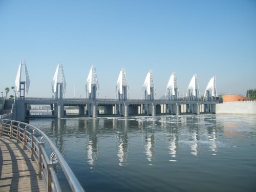 一(yi)渠清水,兩(liang)縱石堤,楊柳依依,洪園節制(zhi)(zhi)閘7對(dui)閘門如7對(dui)潔白羽翼,優雅矗立(li)在(zai)青(qing)天碧水之(zhi)(zhi)中,著(zhu)實美不勝收。洪園節制(zhi)(zhi)閘還有個響當當的名頭——小清河(he)上(shang)第一(yi)閘。作為濟(ji)南(nan)主城區唯一(yi)泄洪河(he)道上(shang)最重要的一(yi)道控制(zhi)(zhi)性閘,它對(dui)市(shi)區防洪可以說起著(zhu)決定性作用(yong),更關乎著(zhu)小清河(he)上(shang)游(you)千萬濟(ji)南(nan)市(shi)民的生命安(an)全。“汛(xun)期泄洪保證(zheng)濟(ji)南(nan)市(shi)汛(xun)期安(an)全,非汛(xun)期在(zai)上(shang)游(you)形成景(jing)觀水面。”這是洪園節制(zhi)(zhi)閘在(zai)規劃(hua)之(zhi)(zhi)初(chu)就被(bei)賦(fu)予的功能。