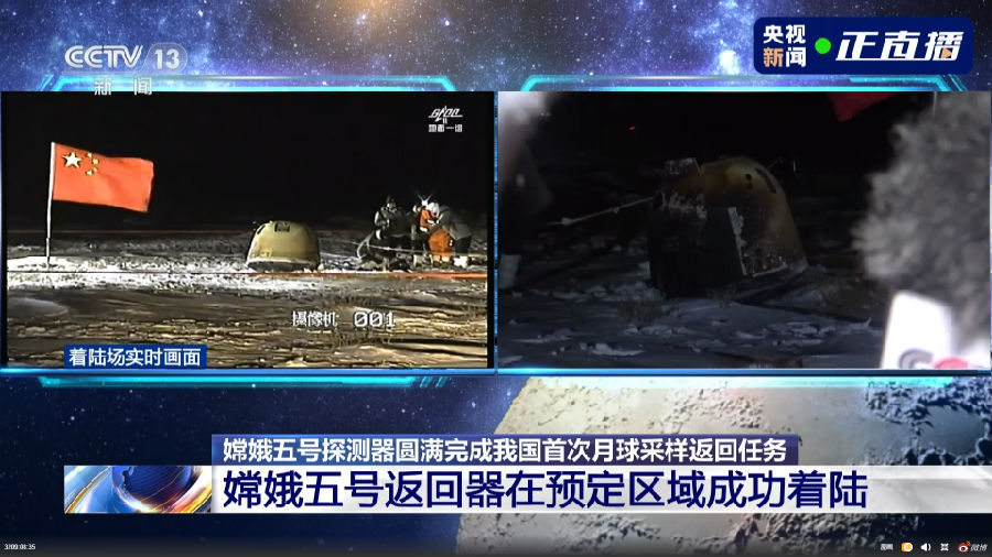 12月13日9時51分(fen),嫦娥(e)五(wu)號(hao)軌(gui)道(dao)器和(he)返(fan)回器組合體實(shi)施(shi)第二次月地轉(zhuan)(zhuan)移入射(she),在距(ju)月面約(yue)230公里處成功實(shi)施(shi)四臺150牛(niu)發動(dong)(dong)機(ji)點(dian)火,約(yue)22分(fen)鐘后,發動(dong)(dong)機(ji)正常關機(ji)。根據實(shi)時遙測數據監視判斷,軌(gui)道(dao)器和(he)返(fan)回器組合體成功進入月地轉(zhuan)(zhuan)移軌(gui)道(dao)。12月17日1時59分(fen),探(tan)月工程嫦娥(e)五(wu)號(hao)返(fan)回器帶著“月球(qiu)的禮物(wu)”在內蒙古(gu)四子王旗預定區(qu)域成功著陸(lu),標(biao)志著我國首次地外天(tian)體采樣返(fan)回任務圓滿完成。