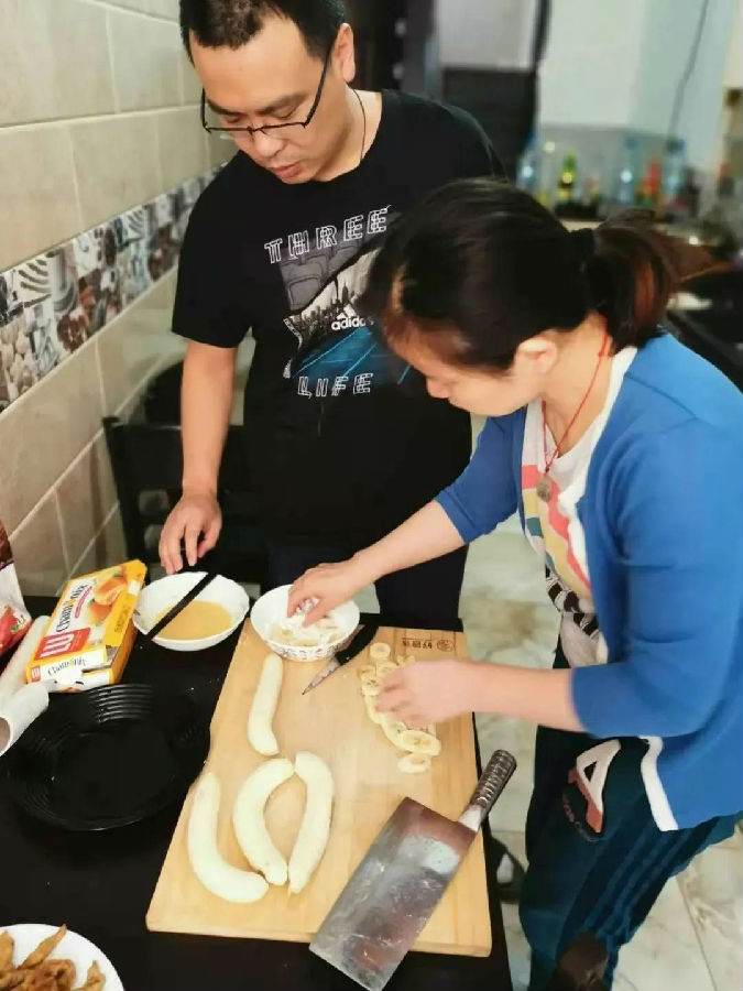 為(wei)了豐富(fu)隔離生(sheng)活,大家組織了外(wai)語(yu)興趣班和專業交(jiao)流班,每天(tian)學習(xi)一(yi)(yi)點外(wai)語(yu),并交(jiao)流專業知識(shi)。在(zai)隔離的(de)(de)(de)日子里,緊鎖的(de)(de)(de)公寓(yu)大門外(wai)是(shi)看(kan)不(bu)到(dao)、摸不(bu)到(dao)卻真實(shi)存(cun)在(zai)的(de)(de)(de)新冠病毒(du),而門內(nei)是(shi)流動著的(de)(de)(de)守望相助的(de)(de)(de)同(tong)胞情誼。在(zai)這里,過硬的(de)(de)(de)廚藝才是(shi)硬通貨,親(qin)手做上(shang)一(yi)(yi)盤美味的(de)(de)(de)大盤雞、一(yi)(yi)碗熱騰騰的(de)(de)(de)面條(tiao)足以(yi)慰藉思鄉的(de)(de)(de)心。