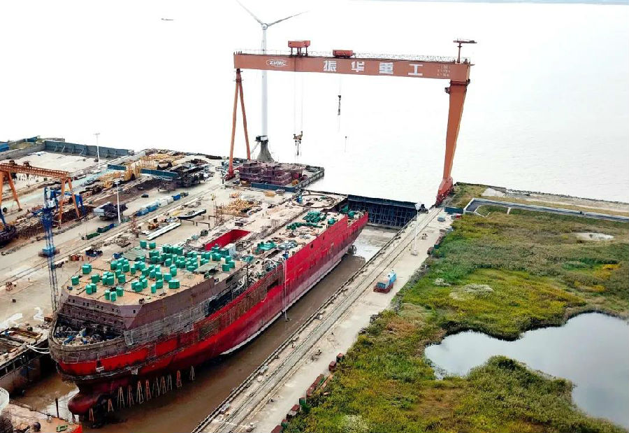 對(dui)于(yu)這(zhe)(zhe)位(wei)長215米(mi)、型寬(kuan)49米(mi)、型深22米(mi)的(de)“巨無霸(ba)”而(er)言(yan),42個(ge)(ge)月的(de)建(jian)造時(shi)間并不寬(kuan)裕。為了(le)順利推(tui)進建(jian)設(she),項(xiang)目(mu)團隊想(xiang)了(le)不少(shao)辦法。一(yi)個(ge)(ge)艏、艉半船(chuan)分(fen)頭建(jian)造再對(dui)接(jie)的(de)大膽設(she)想(xiang)浮現在(zai)陳相(xiang)飛腦海(hai)中,“兩(liang)個(ge)(ge)半船(chuan)同(tong)時(shi)開建(jian),一(yi)定能保質(zhi)趕上工期。”順著(zhu)這(zhe)(zhe)個(ge)(ge)思(si)路,項(xiang)目(mu)團隊立即重新(xin)組織研討、測算、試驗。很快(kuai),新(xin)的(de)方案(an)生成(cheng)了(le)。