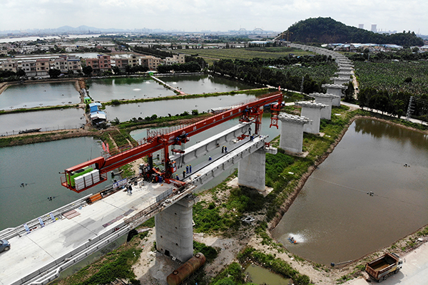 南沙港鐵路項目架梁現(xian)場(黃詩(shi)偉 攝)
