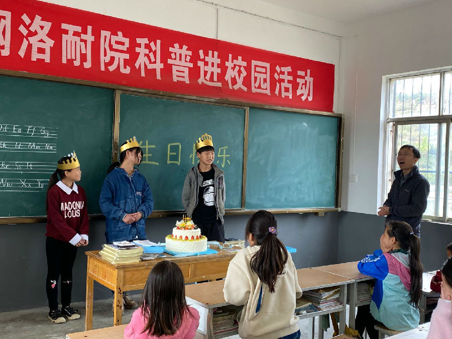 這一天,中(zhong)鋼洛耐院駐汝陽縣城關鎮井(jing)溝(gou)村(cun)第一書記王建棟,組(zu)織師生為(wei)丁俊(jun)迪、杜夢(meng)源、丁奕(yi)凱三(san)位小朋友的過(guo)集體生日。教室內氣氛熱烈,充滿(man)溫情,小壽星們被要求(qiu)表演一個節目。在同(tong)學(xue)們的掌聲鼓勵下,三(san)位少(shao)年或唱歌、或朗誦,歡(huan)樂(le)(le)地(di)展示著自(zi)己(ji)的看家才藝。接著,許愿、吹蠟燭、切蛋(dan)糕,伴隨著“祝你(ni)生日快樂(le)(le)”的歌聲,興(xing)奮得與同(tong)學(xue)們分享(xiang)著自(zi)己(ji)生日的喜(xi)悅。