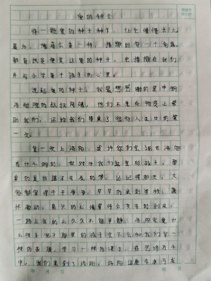 一(yi)(yi)項(xiang)又一(yi)(yi)項(xiang)的(de)(de)(de)針對(dui)性措施,增(zeng)強了(le)井溝(gou)小學(xue)的(de)(de)(de)師資力量(liang),開闊了(le)孩子(zi)們(men)(men)的(de)(de)(de)視野,拓展了(le)孩子(zi)們(men)(men)接觸世界的(de)(de)(de)方式,提高了(le)孩子(zi)們(men)(men)的(de)(de)(de)自信心。井溝(gou)小學(xue)丁笑(xiao)笑(xiao)同學(xue)在(zai)(zai)作(zuo)文《愛(ai)(ai)的(de)(de)(de)種(zhong)子(zi)》中(zhong)寫道(dao):“說起愛(ai)(ai)的(de)(de)(de)種(zhong)子(zi),我最(zui)想感謝的(de)(de)(de)是(shi)中(zhong)鋼洛耐院的(de)(de)(de)叔叔阿姨。他們(men)(men)不光在(zai)(zai)物資上幫(bang)助(zhu)我們(men)(men),還給我們(men)(men)帶(dai)來了(le)很多人(ren)生中(zhong)的(de)(de)(de)第(di)一(yi)(yi)次。”我們(men)(men)也(ye)相信,此刻播撒的(de)(de)(de)“愛(ai)(ai)的(de)(de)(de)種(zhong)子(zi)”一(yi)(yi)定(ding)會發芽(ya),在(zai)(zai)新(xin)時代陽光雨露下健康成長。