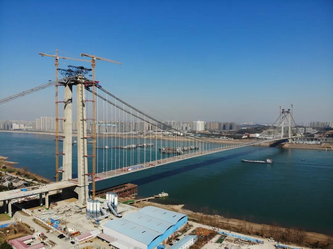 伍(wu)家(jia)崗(gang)長江大(da)(da)橋(qiao)是宜昌城區首座主(zhu)跨超千米(mi)的(de)大(da)(da)橋(qiao),全長2.8公里,主(zhu)橋(qiao)為雙塔(ta)鋼箱梁懸索橋(qiao),采用一(yi)跨過(guo)江方式(shi)建(jian)設,跨度達1160米(mi)。自2017年(nian)開建(jian)以來,中交二航(hang)局項(xiang)目(mu)團(tuan)隊便積極開展科技攻關,大(da)(da)膽創新,取(qu)得多項(xiang)先(xian)進(jin)成果(guo),最終實現了大(da)(da)橋(qiao)毫米(mi)級精(jing)度合龍。