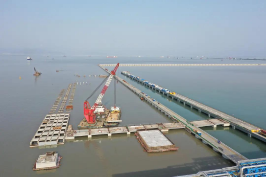 ?中交集團所屬中交三航局承建(jian)的(de)徐圩液體(ti)散貨碼(ma)頭(tou)項目是江(jiang)蘇連云(yun)港石化產業基地(di)的(de)重(zhong)(zhong)點(dian)工(gong)程,計劃新建(jian)2個10萬噸級液體(ti)散貨泊位,用(yong)以滿足港口運(yun)輸及化工(gong)倉儲需求(qiu)。春節前,項目團隊基本(ben)完成了沉樁施工(gong),順利進(jin)入(ru)碼(ma)頭(tou)上部(bu)(bu)結構(gou)施工(gong)階(jie)段(duan)。“構(gou)件安裝作為上部(bu)(bu)結構(gou)的(de)重(zhong)(zhong)要部(bu)(bu)分,它的(de)效率直接決(jue)定了之后的(de)面板安裝及面層(ceng)進(jin)度。”王國正介紹。